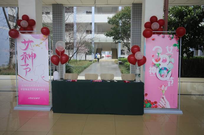 活动现场,后保处把每栋教学楼布置得温馨、喜庆,工作人员热情为每位上课女教师送上花和卡片,让坚守在讲台的女教师们感受到了节日的暖心、贴心。