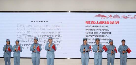 现场互动积极、气氛热烈。师生们用歌声表达了对红色歌曲的喜爱、对党和国家的热爱。
