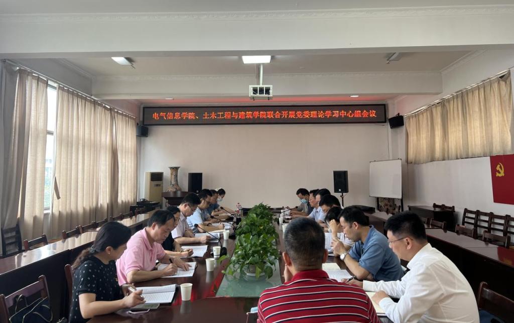 本网讯(通讯员 周雯琪 黄光亮)7月6日下午,电气信息学院、土木工程与建筑学院在流芳校区4B319会议室联合开展党委理论学习中心组会议。实践活动第五小组组长、校党委常委、副校长张彦铎,第五组成员以及两个学院全体党委委员参加学习。会议由电气信息学院党委书记谢春晖主持。