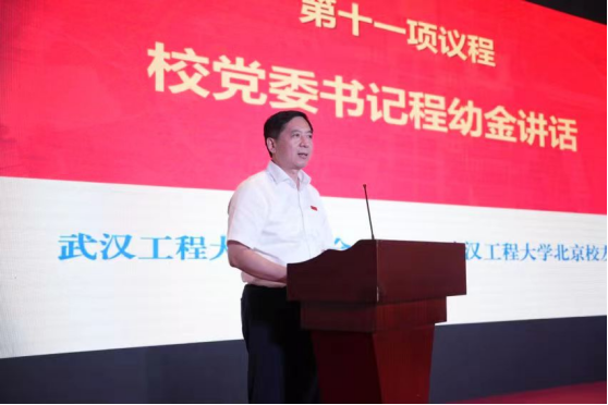 校党委书记程幼金发表重要讲话。他指出:学校五十年的发展历程、历史积淀是工大人最宝贵的精神财富、最可贵的办学资源、最强大的发展自信;校友永远是学校的一份子,校友发展永远是学校发展的重要组成部分,学校永远是校友的精神家园。