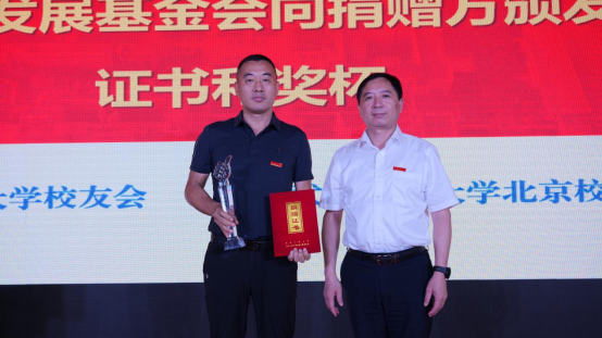 校党委书记程幼金,副书记郑丹凤、李志旭,副校长张彦铎,纪委书记方文海,副校长喻发全分别为捐赠方代表颁发捐赠证书和尊龙凯时人生就是博教育贡献奖杯。