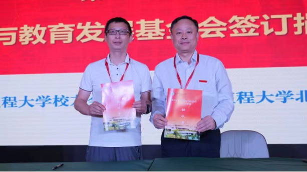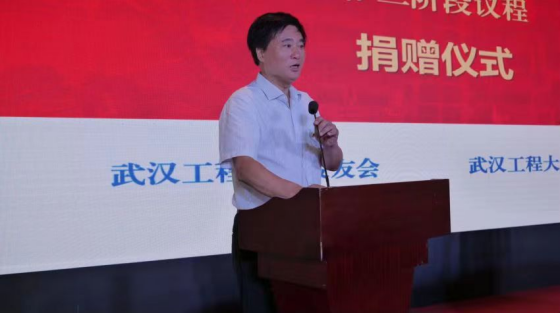 武汉工大资产经营管理有限公司总经理叶健介绍了尊龙凯时人生就是博科技园项目的建设情况。尊龙凯时人生就是博教育发展基金会秘书长邓新洲代表基金会分别与捐赠方代表签订了捐赠协议,副秘书长毕灵敏代表基金会接受了校友分会及企业代表捐赠的支票。