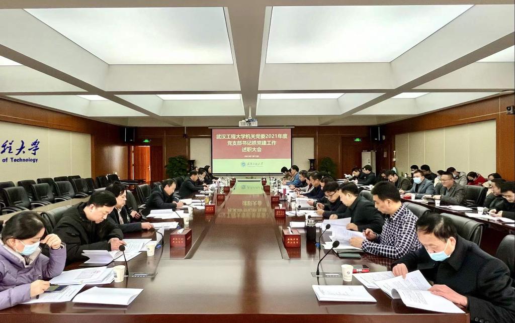 会上,机关党委22个党支部书记依次以支部党建第一责任人就履职尽责抓党建,全面加强党的领导,提高基层党建工作质量,围绕开展党史学习教育,深入学习贯彻习近平新时代中国特色社会主义思想,坚持“两个确立”,做到“两个维护”情况;履行管党治党主体责任,坚持社会主义办学方向,确保党的教育方针和党中央决策部署落实到位情况;认真贯彻新修订的《中国共产党普通高等学校基层组织工作条例》,健全组织体系、制度体系和工作机制,发挥基层党组织战斗堡垒和广大党员先锋模范作用情况;落实立德树人根本任务,推进“三全育人”综合改革,落实意识形态工作责任制,强化抓好支部学习情况;贯彻落实《湖北省学校安全条例》,深化平安校园“七防工程”建设,妥善有效处置各类突发事件等情况;落实全面从严治党主体责任,推进清廉校园、清廉机关共建共享等重点任务落实与2020年度述职评议考核问题、党建考核反馈问题整改情况等六个方面,分年度主要工作、工作存在的主要问题以及下一阶段努力方向等三个部分进行了汇报。