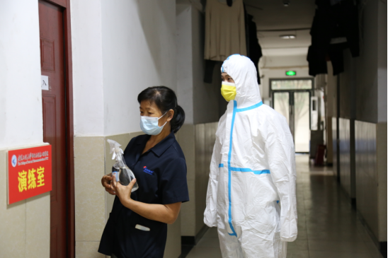 韩高军首先对工作组一行莅临指导表示欢迎和感谢,并简要介绍了学校近期疫情防控和秋季开学准备工作情况。他表示,学校将以此次检查为契机,进一步提高思想认识、聚焦薄弱环节,对工作组指出的问题将照单全收、立行立改,进一步规范隔离点建设,创新疫情防控宣传形式,把各项工作做细做实,切实做好学校常态化疫情防控和秋季开学工作。