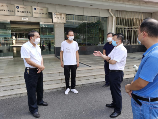 程幼金在武昌校区行政楼前和退役军人代表土木工程与建筑学院教师杜智、保卫处治安干事韩晓青亲切交谈,认真聆听他们讲述当年艰苦卓绝的奋斗经历,详细了解他们的生活、工作状况,并对全校在职退役军人致以节日的问候;随后,程书记一行来到家属区王良骏老同志家中,向他转达了学校党委的深切关怀和节日祝福,亲切询问身体情况,为他向国家、部队和学校作出的贡献表示感谢,并致以美好的祝愿。