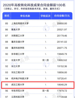本网讯(通讯员郭洪伟)6月29日,《中国科技成果转化2021年度报告(高等院校与科研院所篇)》在京发布。《报告》显示,在2020年高等学校以转让、许可、作价投资和技术开发、咨询、服务方式转化科技成果合同金额排行中,我校以18640.29万元位居全国高校第95位,在汉高校第4位,省属高校第2位。在2020年高等学校以转让、许可、作价投资三种方式转化科技成果合同金额排行中,我校以3527.92万元位居全国高校第48位,在汉高校第3位,省属高校第1位。