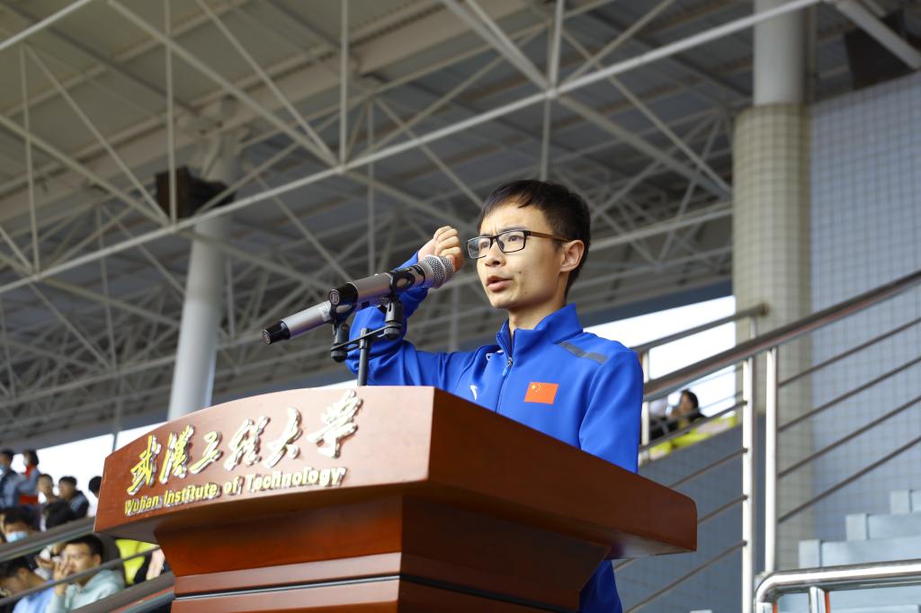 材料科学与工程学院2018级高分子材料专业学生何震作为运动员代表庄严宣誓。
