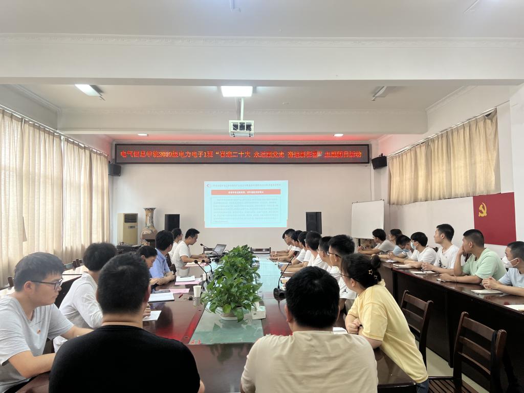 本网讯(通讯员 周雯琪)为推动下基层察民情解民忧暖民心实践活动取得实效,6月23日下午,校党委常委、副校长张彦铎深入电气信息学院2019级电力电子1班,参加“喜迎二十大 永远跟党走 奋进新征程”学习习近平总书记在中国共产主义青年团成立100周年大会上的讲话精神主题团日活动。本次活动在4B319会议室举行,学院党委书记谢春晖、2019级辅导员周雯琪、电力电子1班25名暑期留校同学参加活动。