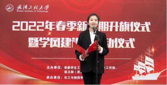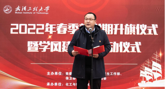 本网讯(通讯员 梅军)为进一步优化校风正、学风优、班风良的育人环境,激发学生的荣校爱校意识,以良好的精神风貌和优异的成绩庆祝校庆五十周年,喜迎党的二十大,2月28日,由党委学工部、研工部、保卫部(武装部)、校团委主办,化工与制药学院承办的2022年春季学期第一次升旗暨学风建设月启动仪式活动在流芳校区田径场举行。