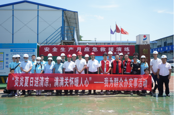 本网讯(通讯员 谭明武)6月23日中午,“炎炎夏日送清凉,满满关怀暖人心”——我为群众办实事活动在学校教育教学综合楼施工场地举行。校党委副书记李志旭带队为建设工人捐赠202箱共计4848瓶矿泉水,送去清凉与关怀。