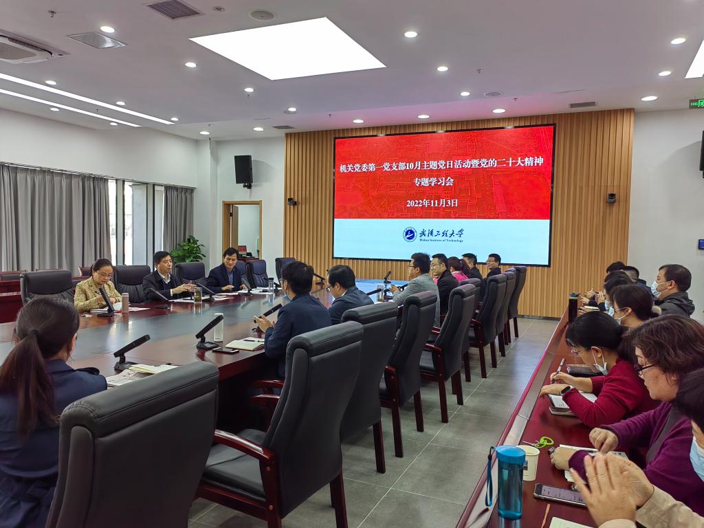 本网讯(通讯员 张洋)11月3日下午,机关党委第一党支部在综合楼103会议室召开10月份主题党日活动暨党的二十大精神专题学习会。校党委书记程幼金、第一支部全体党员参加会议。会议由支部副书记肖平主持。
