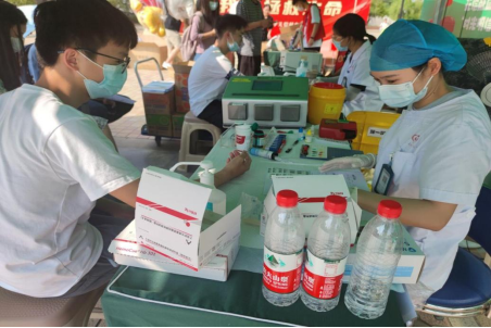 本网讯(通讯员 杨荣佳 宋心怡)6月14日至15日,武汉血液中心与我校共同举办的“为献血喝彩,向生命致敬”献血车进校园活动走进流芳校区大礼堂、泰塑学生公寓。我校学生炎炎烈日下为爱挽袖。截至6月15日18:00,共有513名学生参与本次献血活动,献血量总计913.5单位。