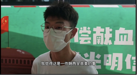 谭郝禹同学说:“今天是世界献血日,我觉得献血一方面对自己有益,另一方面又能帮助到其他人,是一件两全其美的事,下次献血车进校园活动我还会来参加。”