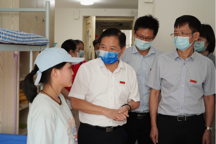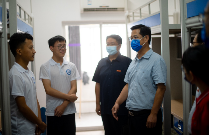 程幼金与同学们亲切交谈,详细询问了同学们入校后的住宿、用餐、宿舍生活等情况,了解新生入学后遇到的困难和生活需求。程书记嘱咐同学们,要自觉遵守疫情防控管理规定,落实好个人防控责任,公共场所要戴好口罩,按照要求完成核酸检测,保持良好的宿舍卫生,共同维护校园安全稳定。同时,希望同学们能够认真学习,学有所成、学有所获、学有所用,以良好的状态迎接即将开始的大学生活。