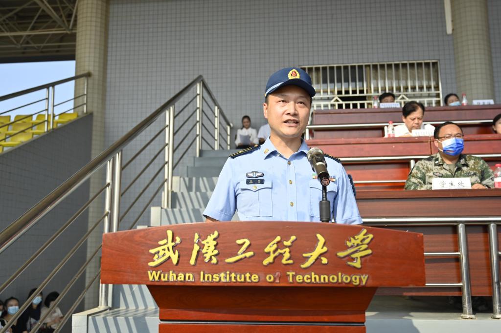 空军预警学院学员二大队七队少校政治教导员张欣讲话。
