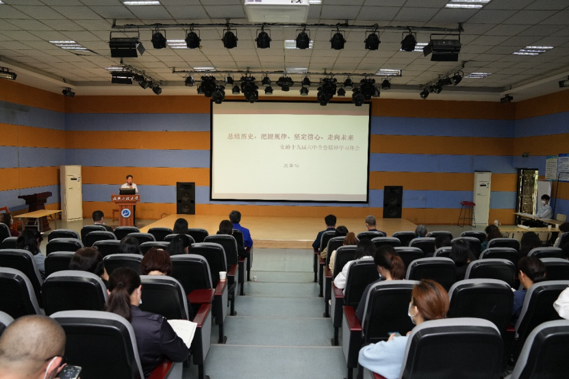 本网讯(通讯员 顾泽文)为深入学习贯彻党的十九届六中全会精神,进一步引导师生深刻领会全会精神的丰富内涵与核心要义,5月19日下午,校党委常委、统战部部长、科学技术发展院院长吴云韬在文科楼313报告厅以《总结历史、把握规律、坚定信心、走向未来》为题,为外语学院、体育部教职工宣讲党的十九届六中全会精神,党委宣传部副部长赵小硕和外语学院、体育部领导班子成员参加宣讲会,会议由外语学院党委书记王火利主持。