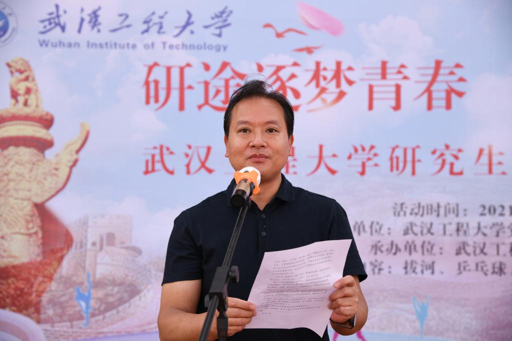 校党委研工部副部长陈俊致开幕词,他指出本次体育文化节旨在贯彻落实全国研究生教育会议精神,推进体育强国建设、弘扬校园体育文化、加强研究生团队协作意识,号召全体研究生在体育锻炼中享受乐趣、增强体质、健全人格,以积极饱满的精神状态迎接中国共产党成立100周年。同时他给学生们提出了三点建议:一是坚持健康第一的教育理念,推进全民健身和全民健康的深度融合,促进研究生的科研工作和体育锻炼协调发展;二是以饱满的激情、昂扬的斗志、勇于拼搏的信念,团结向上的精神投入到比赛中,赛出成绩、赛出水平、赛出新风尚;三是放飞青春梦想,释放青春活力,培养良好自我感知、自我激励,勇于挑战、突破极限、永不服输,为今后成长、成才打下坚实基础。