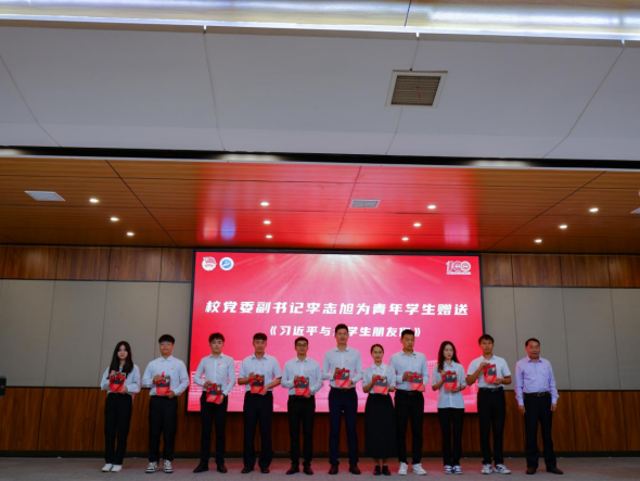 “希望我们青年大学生通过读这本书感受习近平总书记的思想伟力、领袖风范、人格魅力,努力成长为堪当民族复兴大任的时代新人;希望广大团干部自觉向习近平总书记学习青年群众工作的艺术和方法,全面提升做好新时代共青团工作的能力水平。”校党委副书记李志旭为青年师生赠送书本《习近平与大学生朋友们》。