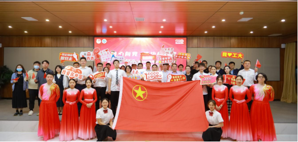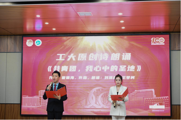 在场师生观看了工大庆祝建团百年原创视频。视频用时间轴和历史影像的方式再现了中国共产主义青年团波澜壮阔的百年奋斗历程。