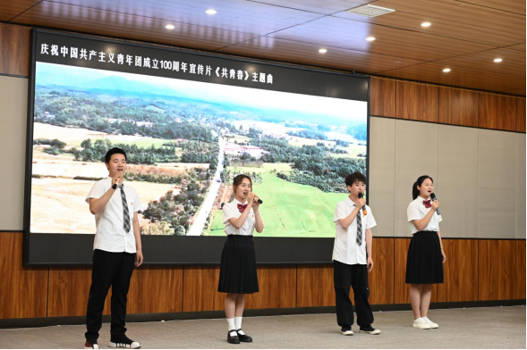 “我要一生清澈地爱着啊,我要长歌领着风踏着浪…”。现场师生挥旗同唱《光荣啊,中国共青团》以及团中央庆祝中国共产主义青年团成立100周年主题曲《有我》。