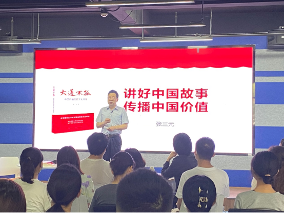 本网讯(通讯员 杨茜)为营造爱读书、读好书、善读书的浓厚校园文化氛围,5月21日上午,由图书馆、宣传部联合举办,以“读好工大图书,讲好中国故事,传播好中国声音”为主题的第三期静思读书会在学校心理健康教育中心三楼会议室成功举办。本次读书会邀请到我校管理学院张三元教授与师生读者们分享他的著作《大道不孤:中国价值的跨文化传播》,并围绕如何“讲好中国故事,传播好中国价值”、如何构建亲民的“新时代中国价值跨文化传播话语体系”、如何建设好跨文化传播渠道和利用好传播新媒介等内容进行互动讨论。此次活动通过腾讯会议现场直播,来自全校各学院的30余名学生在现场参加。