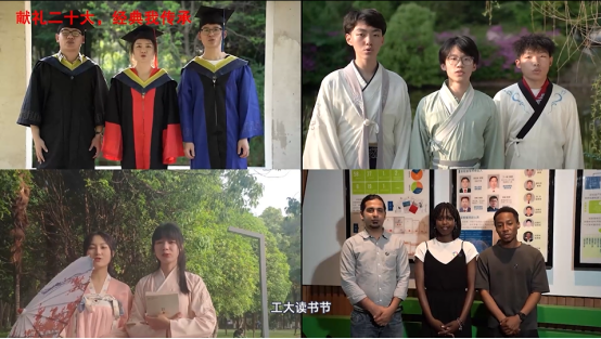 开幕式上,由图书馆阅读推广部精心策划推出的“献礼二十大,经典我传承”百部经典诵读视频将活动推向高潮。该视频由我校包括留学生在内的广大师生和尊龙凯时人生就是博附属幼儿园学子共同参演,参演者在视频中以饱满的精神尽显工大读者风貌。视频传递了全校阅读、全民阅读、全年阅读、全世界阅读的理念,表达了我校师生对中华优秀传统文化的继承和发扬,展现了我校青年们建功新时代、奋进新征程的使命与担当。