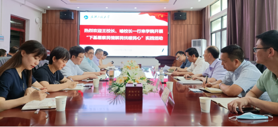 本网讯(通讯员 张蕾)6月23日上午,校长王存文、副校长喻发全一行来资源与安全工程学院开展“下基层察民情解民忧暖民心”实践活动。部分职能部门负责人,学院领导班子成员及学院教研室主任参加调研座谈会。