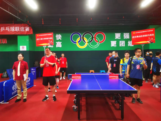 本网讯(通讯员 杜蔚明)7月2日至3日,由武汉市侨联主办的“喜迎二十大·侨心永向党--2022年武汉城市圈侨界乒乓球联谊赛”在武汉全民健身中心乒乓球馆隆重举行。我校侨联派出了由7人组成的代表队,校党委常委、副校长张彦铎出席并参加了领导组比赛。