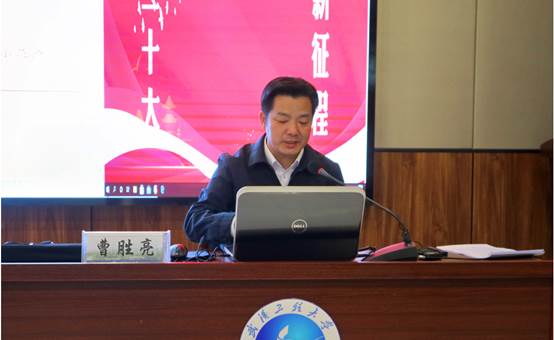 在校长正式授课前,马克思主义学院院长曹胜亮作为课程负责人,对《加油中国》课程的建设发展历程、指导思想及建设目标、课程内容与教学安排、课程评价与建设规划以及课程考核方式做了简要介绍。