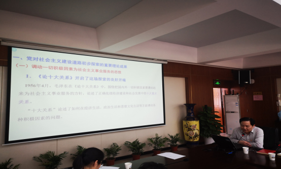 开班式后,马克思主义学院党委书记舒先林为读书班学员作题为《党对社会主义道路的最初探索》的专题讲座。