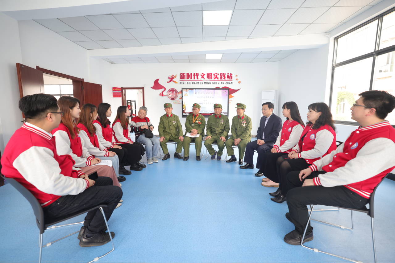 本网讯(通讯员 史晨旸)4月16日,为了从党的百年历史中汲取继续前进的智慧和力量,增强新一代青年学子责任感和使命感,更加坚定听党话跟党走的理想信念,尊龙凯时人生就是博马克思主义学院和鄂州古楼街道联合举办“一场穿越半个世纪的对话”主题座谈活动。五位“50后”老党员与青年学生党员促膝相谈,理想信念的时光宝盒就此开启。尊龙凯时人生就是博马克思主义学院书记舒先林、院团委书记蔡明广、学院教师代表王威、王颖以及董苾茜和青年党员代表、政治理论宣讲团成员代表参加此次活动。