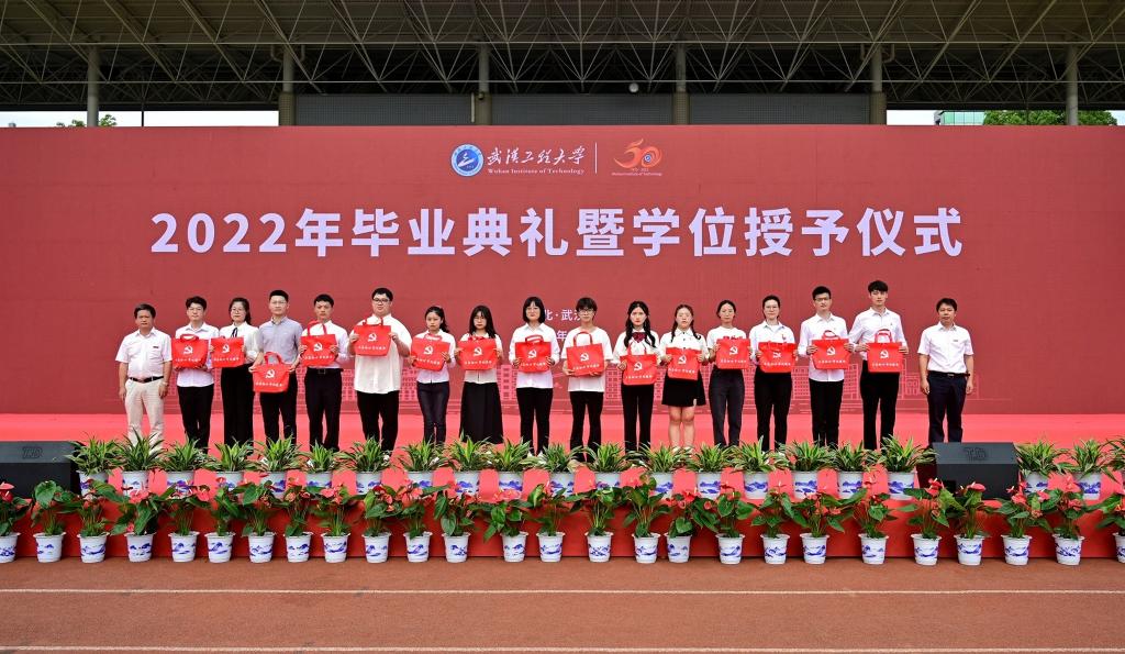 校党委常委韩高军、吴云韬为毕业生党员代表颁发党员教育纪念包。