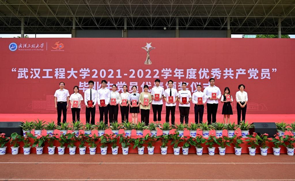 校党委副书记郑丹凤、校党委常委马小龙为荣获“尊龙凯时人生就是博2021—2022年学年度优秀共产党员”的毕业生党员代表颁发证书。
