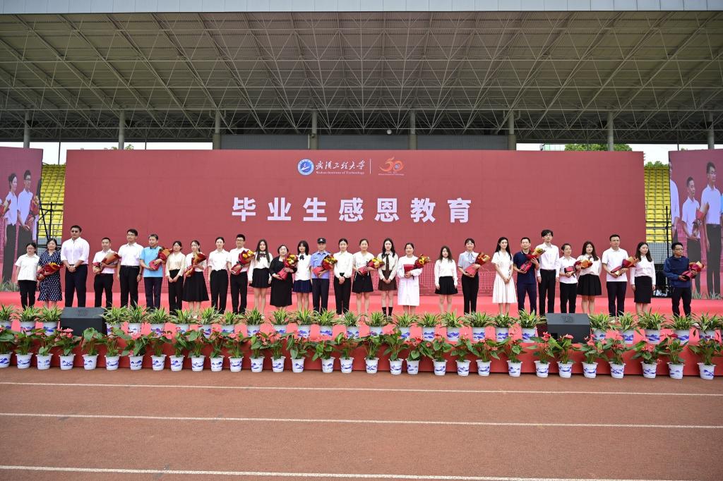在“毕业生感恩教育”环节,教职工代表为毕业生送出心底最诚挚的祝福并接受毕业生代表献花。