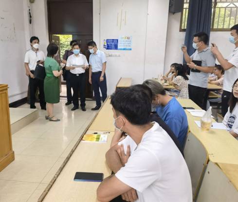 李志旭带队检查武昌校区第二教学楼上课情况。他对新学期教师到岗情况、教学状态、学生出勤以及设备运行情况进行了全面的检查,向授课教师详细了解教学安排,要求老师和相关部门做好线上教学安排,确保因疫情无法及时返校上课同学的学习不受影响。