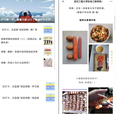 同时,学院微信公众号也及时报道同学们的活动开展和打卡情况,并对部分表现优秀的同学进行跟踪报道,以此来激励更多的同学积极参与进来。