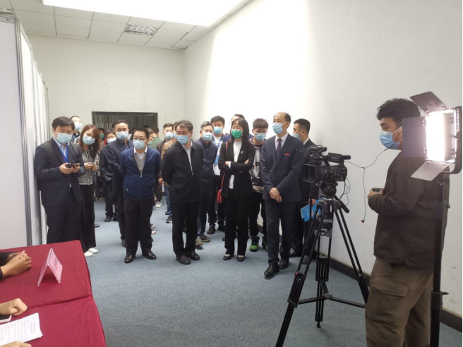 人力资源和社会保障部全国人才流动中心副主任谢瑗,学校副校长喻发全了解用人单位岗位需求。
