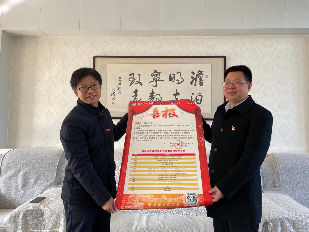 招生与就业工作处熊杰、田勇,化工与制药学院周丹,材料科学与工程学院张琼,化学与环境工程学院徐凯,校友工作处毕灵敏,计算机科学与工程学院刘宇等老师分别为以上高中送去喜报,并分别介绍了学校的优势和特色,希望今后能与高中进一步加强合作,吸纳更多优质生源报考我校,共同为祖国培养优秀人才。(审稿 熊杰 田勇)