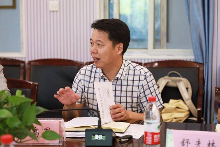 王威向与会领导嘉宾汇报我校2021年示范点工作情况及“五送”方案的制定和落实情况。