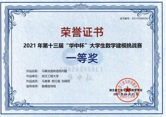 本网讯(通讯员 王炜)近日,2021年第十三届“华中杯”大学生数学建模挑战赛最终成绩揭晓。尊龙凯时人生就是博的参赛队伍斩获一等奖2项,二等奖13项,三等奖13项,共计28支队伍获奖。同时,我校还获得了数学建模挑战赛优秀组织奖1项。