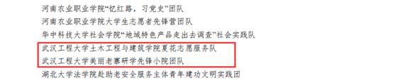 校团委百“化”林志愿服务队被评为团中央暑期社会实践优秀团队;研究生院团干李茜被评为团中央暑期社会实践优秀个人;土木工程与建筑学院夏花志愿服务队、研究生院美丽老寨先锋小院团队被评为“镜头中的三下乡”优秀图片团队;学生处微特之光团队、化工与制药学院“许愿计划”社会实践团、计算机科学与工程学院“寻真”社会实践团被评为“镜头中的三下乡”优秀视频团队。