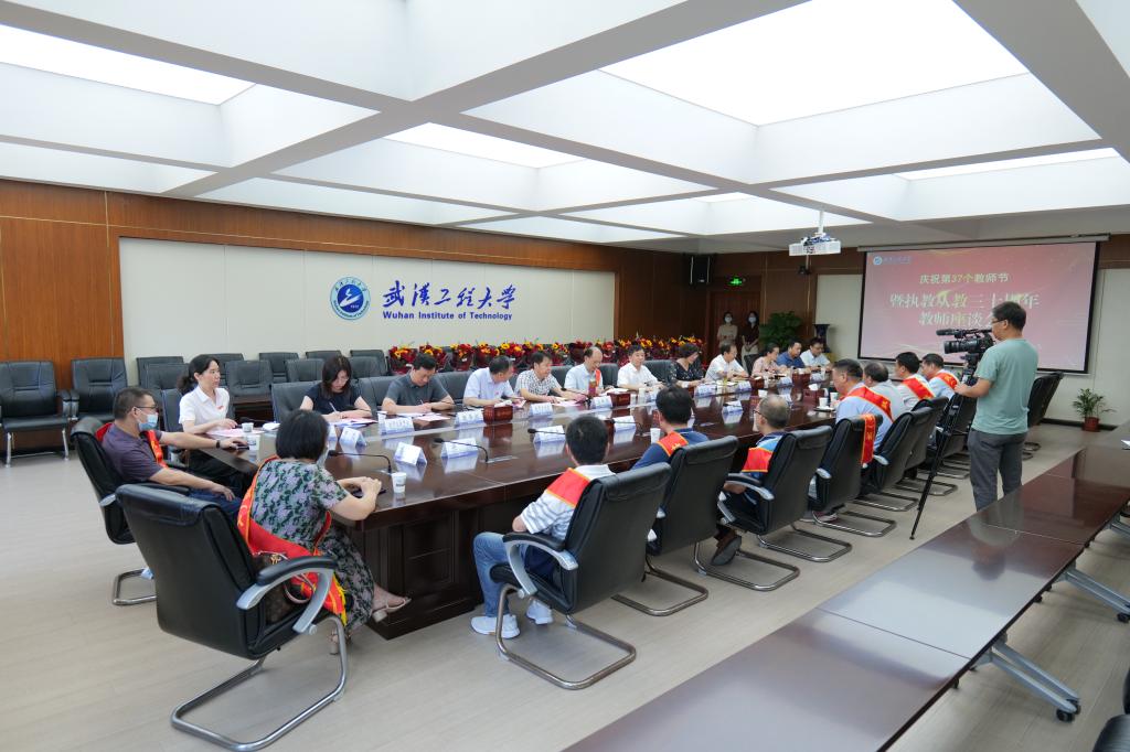 本网讯(通讯员 曾颖 张峻玮)9月9日上午,为庆祝第37个教师节,我校在流芳校区第二会议室召开执教从教三十年教师座谈会。校党委书记程幼金、校党委副书记郑丹凤、副校长喻发全、校党委常委组织部长马小龙、校党委常委宣传部长韩高军以及相关职能部门负责人与执教从教三十年教师欢聚一堂、共叙桑麻,一道庆祝教师节。会议由校党委副书记郑丹凤主持。