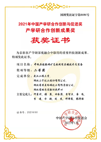 本网讯(通讯员 吴丕业)近日,中国产学研合作促进会发布了关于2021年中国产学研合作促进会产学研合作创新与促进奖的表彰决定(产学研函字[2022]第12号),由兴发矿业学院何东升教授主持完成的项目“中低品位胶磷矿高效利用关键技术及装备”获创新成果奖二等奖,材料科学与工程学院王大威副教授主持完成的项目“MSPI全降解医用敷料关键技术及产业化”获创新成果奖优秀奖。