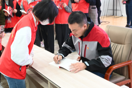 活动结束后,汪勇为我校志愿者代表赠书并签名,并勉励青年学习争做“生命的摆渡人”,用一颗赤诚之心回报母校、回报社会、回报国家。
