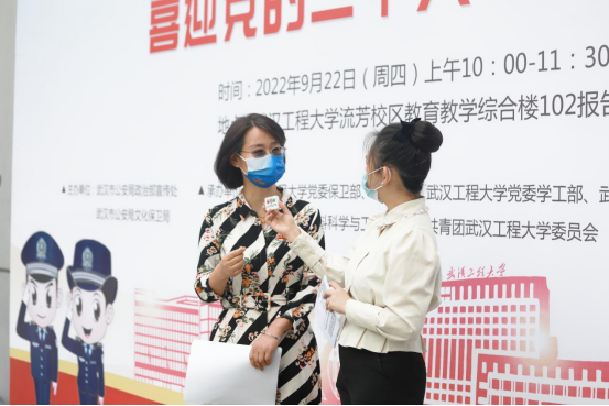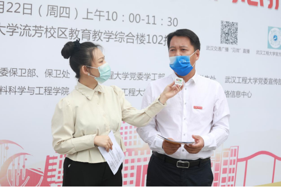 武汉市公安局文化保卫局杨警官,校党委保卫部、学工部负责人,校团委、材料科学与工程学院、机电工程学院的辅导员和材料学院2022级新生代表现场接受直播了采访。