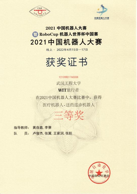 本网讯(通讯员 黄自鑫 魏子昂 雷恒昌)由中国自动化学会主办的2021年中国机器人大赛圆满落幕,我校电气信息学院学子在本届大赛中披荆斩棘获得了国家级一等奖1项、三等奖3项的优秀成绩。