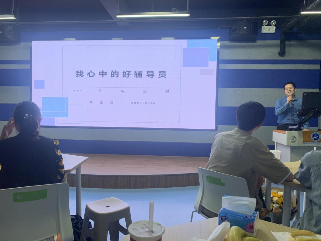 化学与环境工程学院辅导员林梦雷以“我心中的好辅导员—小白成长记”为题分享了自己作为一名辅导员成长道路上的心路历程,诙谐但不乏真情实感地讲述了自己用真诚的关心获得学生信任的故事。