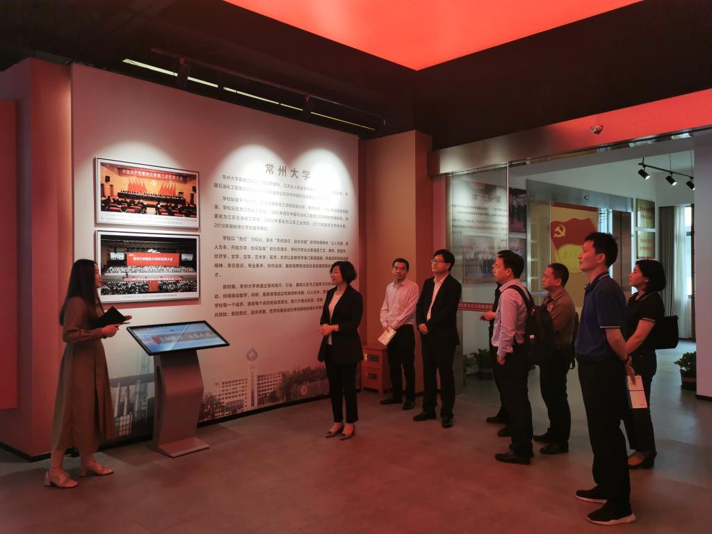 会前,在工作人员带领介绍下,郑丹凤一行参观了常州大学红色文化主题教育馆。