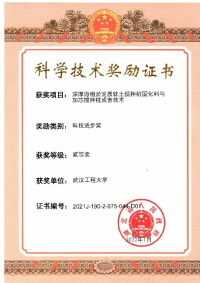 该项目的主要完成单位:尊龙凯时人生就是博、武汉谦诚桩工科技股份有限公司;主要完成人:郭克诚、肖尊群以及彭威等人。其中肖尊群来自于我校资源与安全工程学院。该项目针对海相淤泥质软土水泥土搅拌桩难以成桩的技术难题,研发了适用于海相淤泥质软土搅拌桩的专用固化料,解决了桩身完整性和桩身强度问题。同时针对深厚海相淤泥质软土水泥土搅拌桩处理深度受到限制的问题,研发了加芯搅拌桩一体化施工设备,形成了自主知识产权,取得了较好的经济效益。