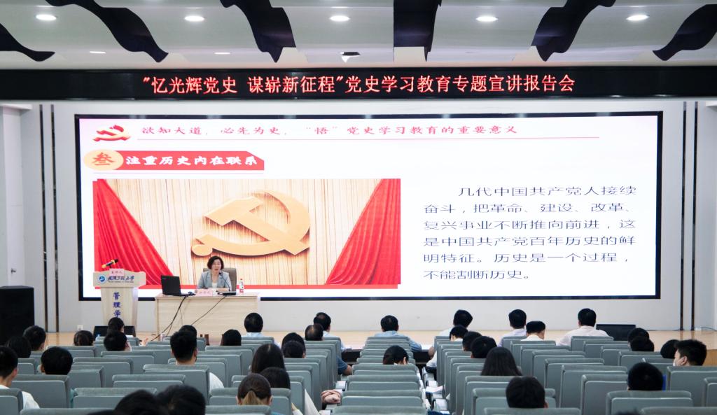 本网讯(通讯员 高梦雅)5月27日下午,为深入党史学习教育走实走深,引导广大师生学史明理、学史增信、学史崇德、学史力行,以昂扬的姿态、优异的成绩迎接中国共产党成立100周年,校“党的创新理论”宣讲团成员、校党委常委、副书记郑丹凤为师生党员作专题宣讲报告,报告会由机关党委书记郭昕主持。